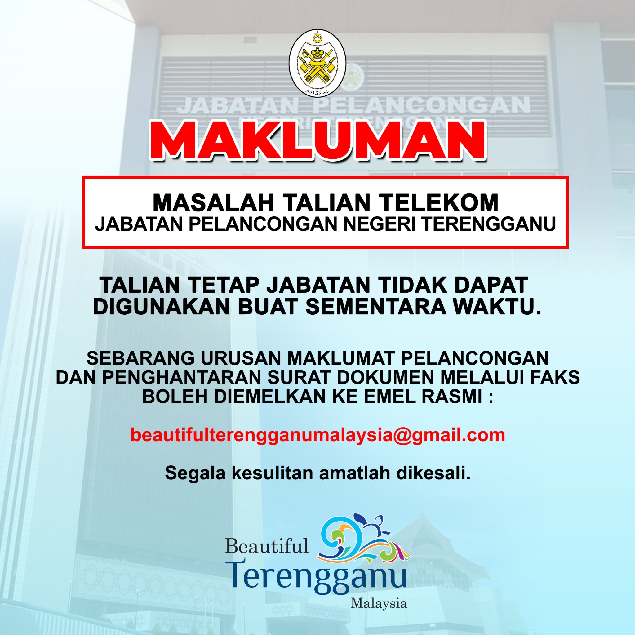 Jabatan Pelancongan Negeri Terengganu Terengganu Maju Berkat Sejahtera LAMAN UTAMA. Jabatan pelancongan negeri terengganu. Hr at terengganu dot gov dot my No.